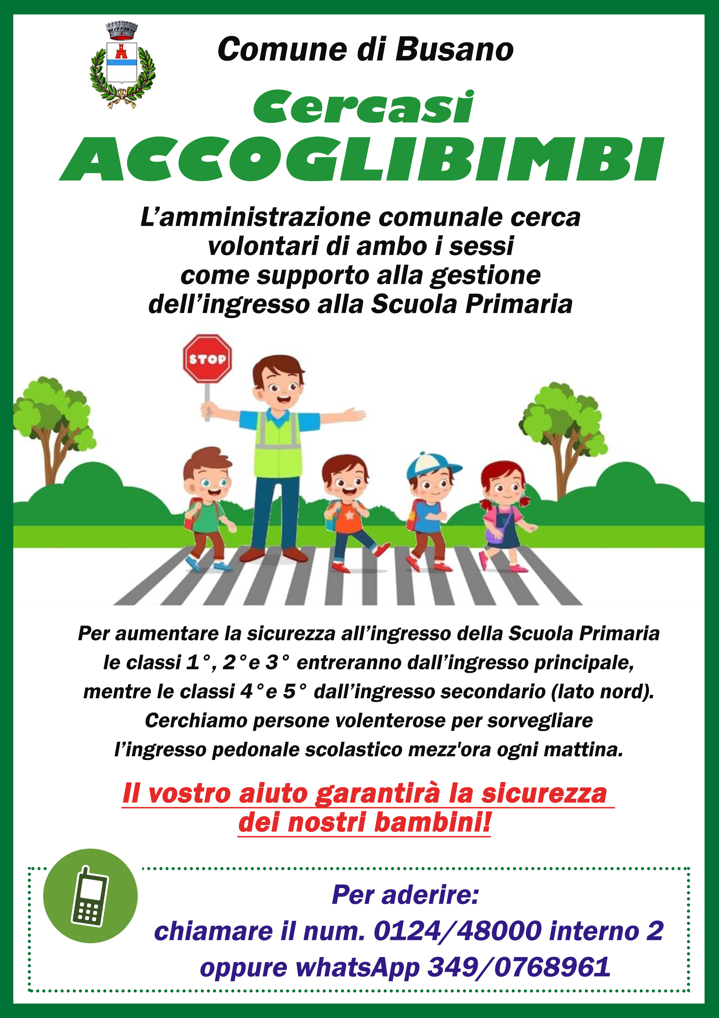 L'amministrazione comunale cerca volontari di ambo i sessi come supporto alla gestione dell'ingresso alla scuola primaria.