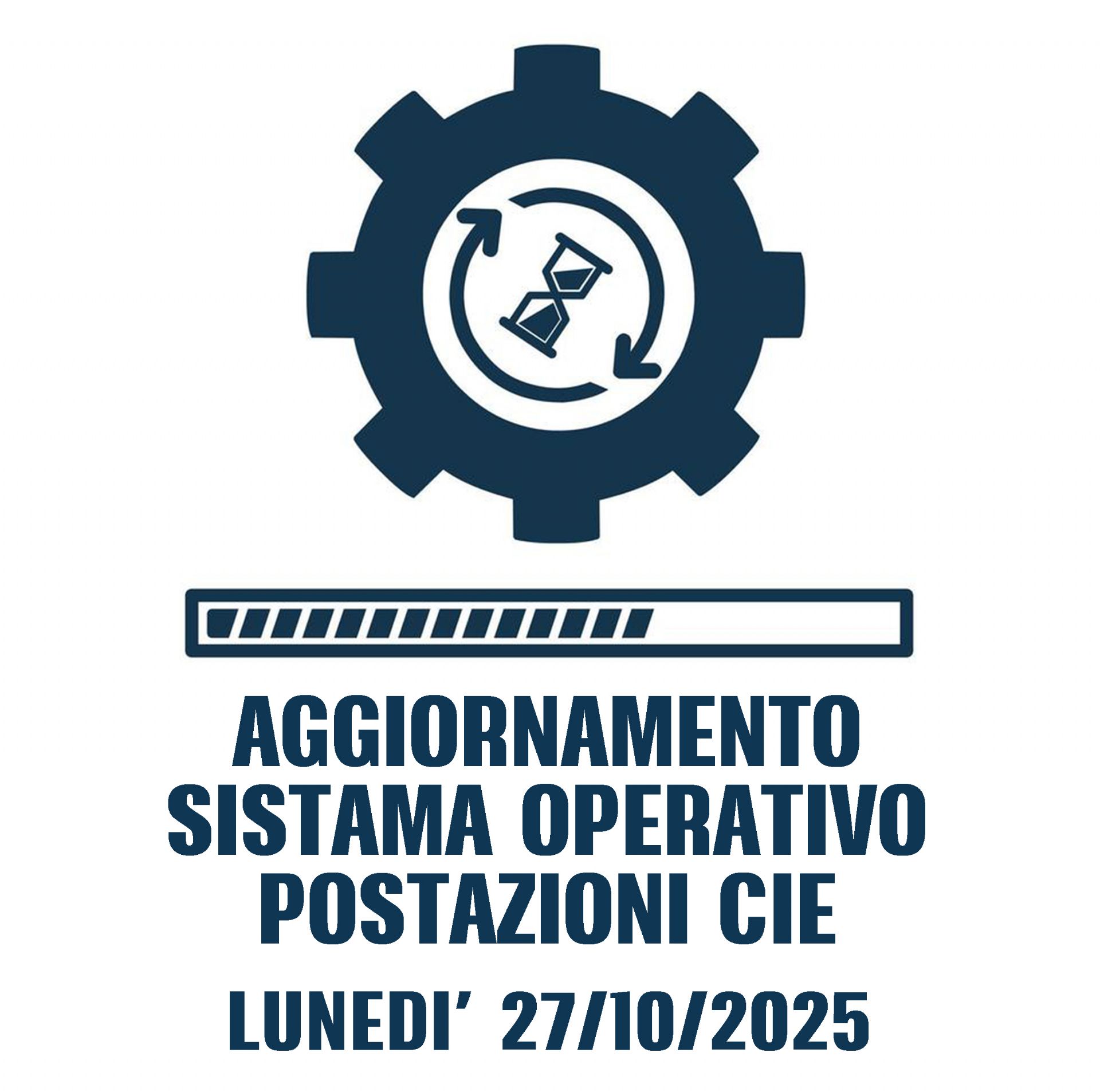 Si comunica alla popolazione che il giorno 27/10/2025 dalle ore 8.00 verranno rilasciati centralmente gli aggiornamenti relativi al sistema operativo delle postazioni di emissione delle CIE.