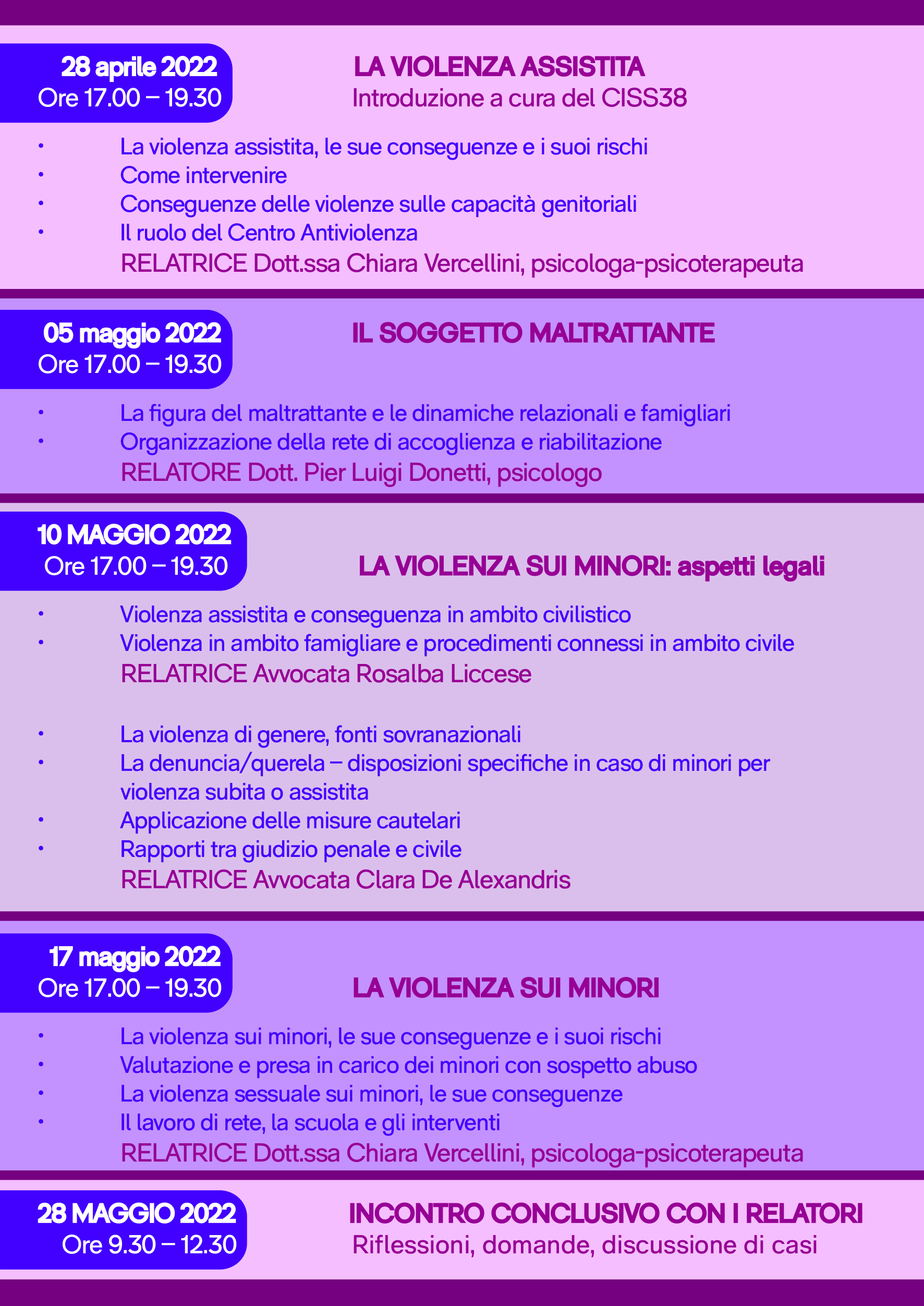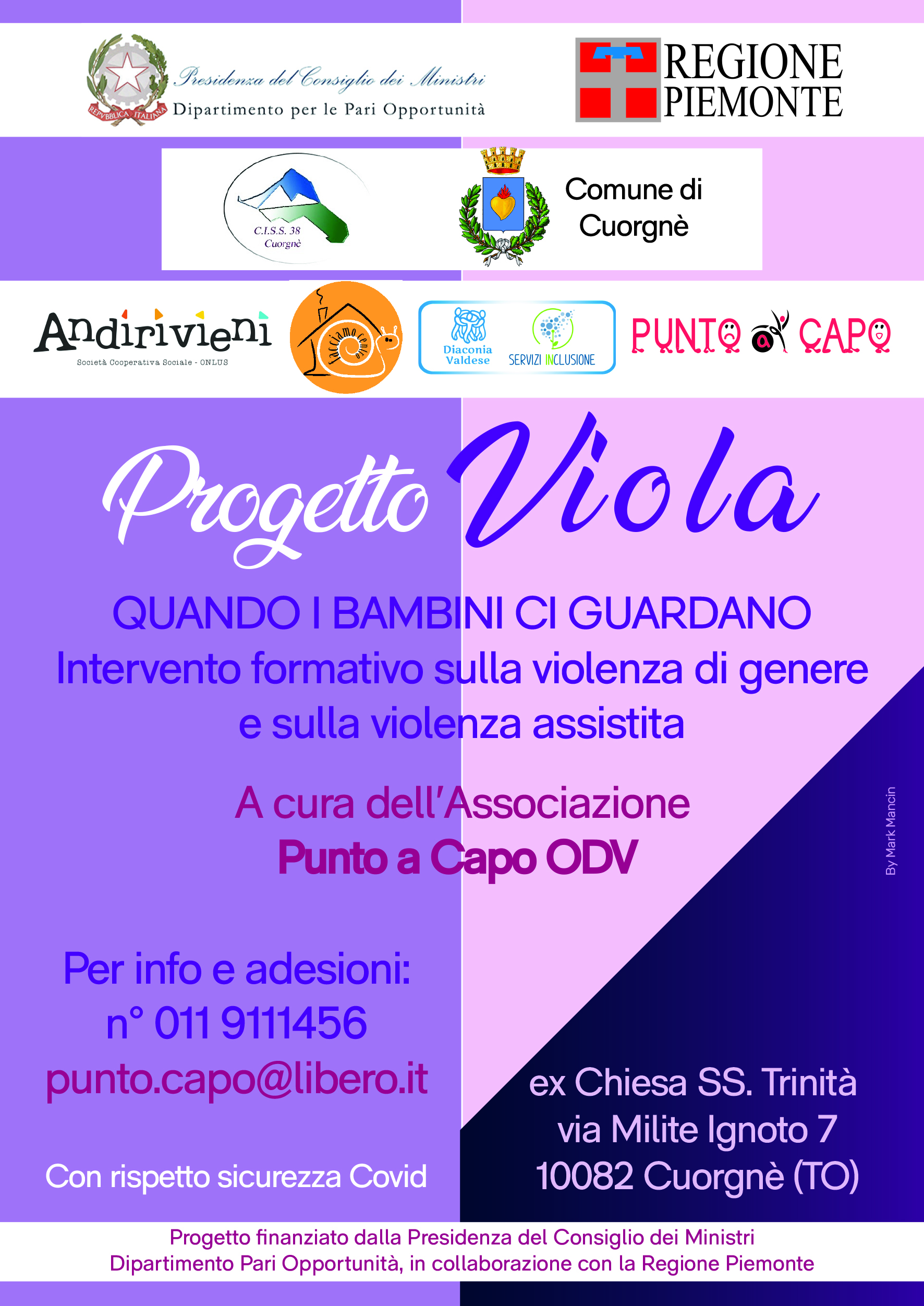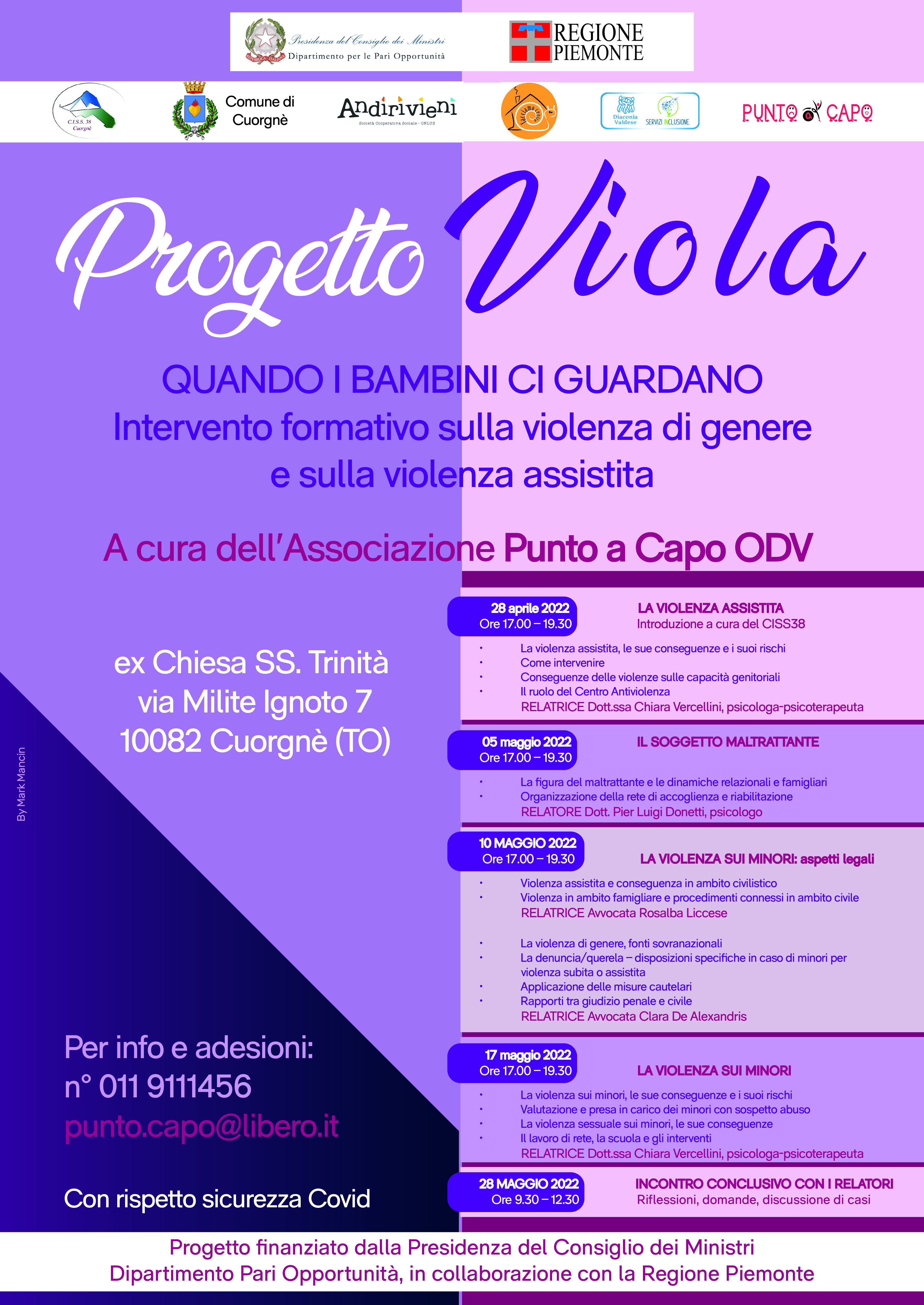 In allegato i volantini dell'intervento formativo sulla violenza di genere e sulla violenza assistita "Progetto Viola"