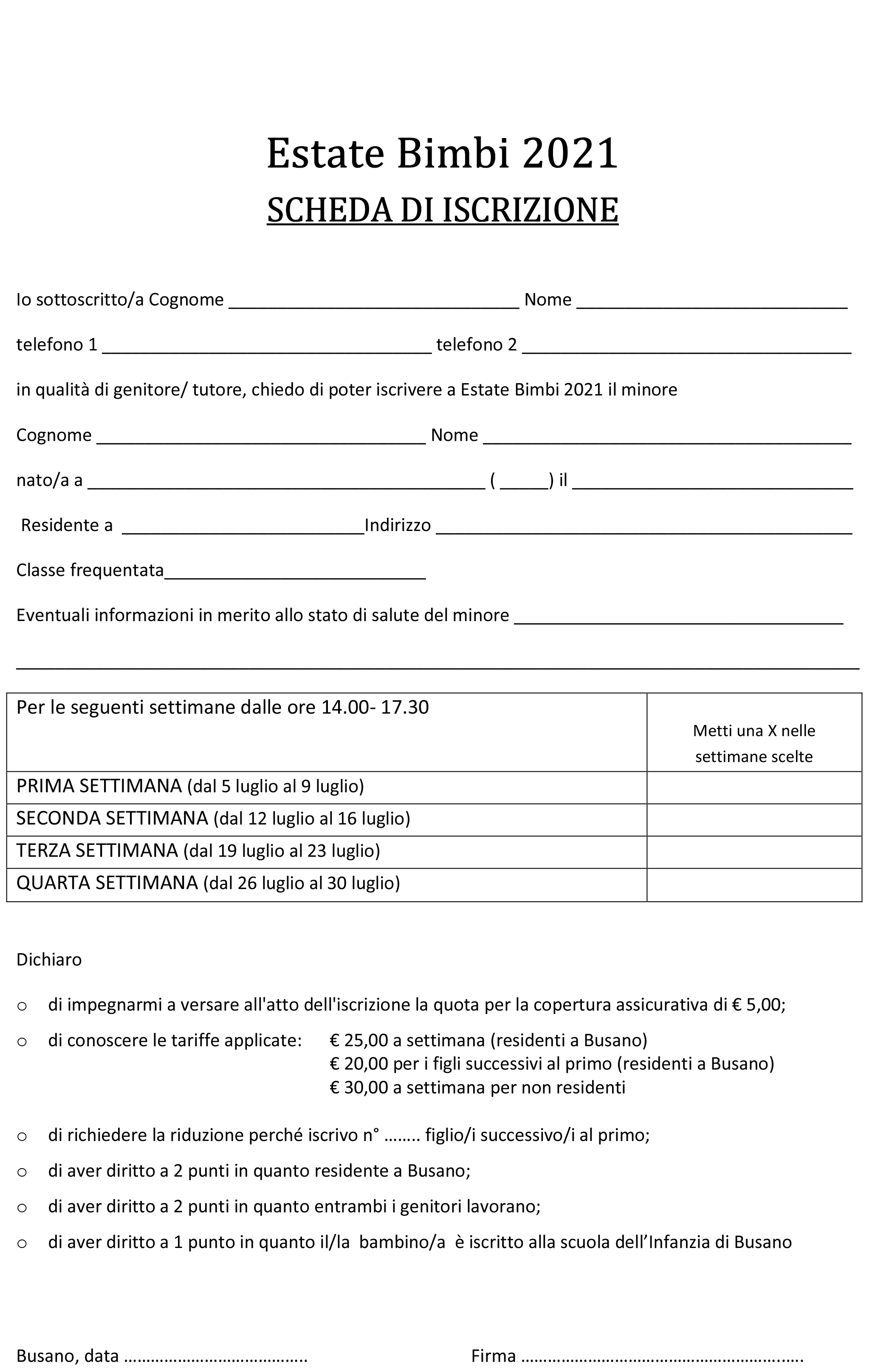 In allegato volantino e modulo per iscrizione
