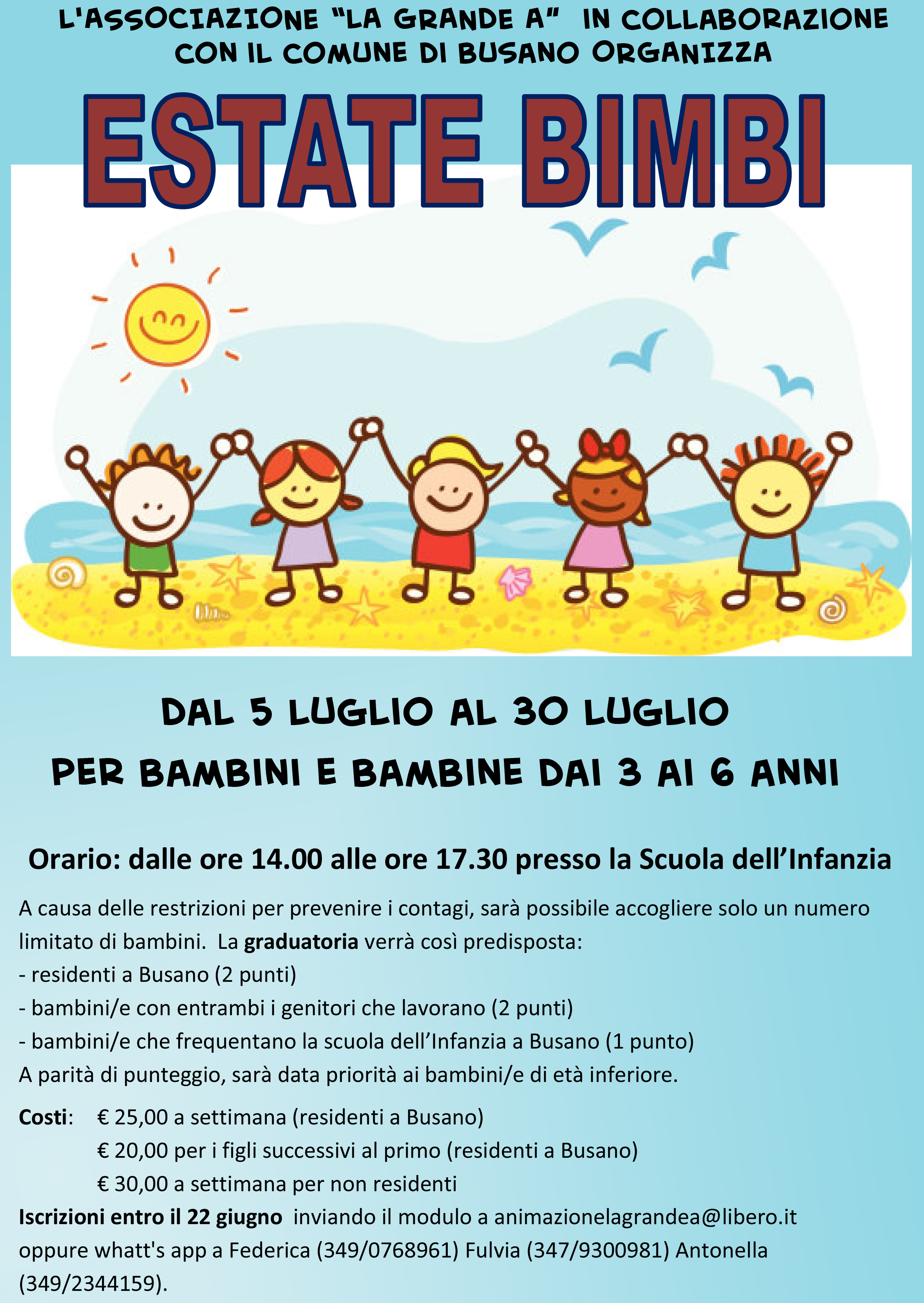 L'ass.ne LA GRANDE A in collaborazione con il comune di Busano organizza ESTETE BIMBI presso la scuola dell'Infanzia.