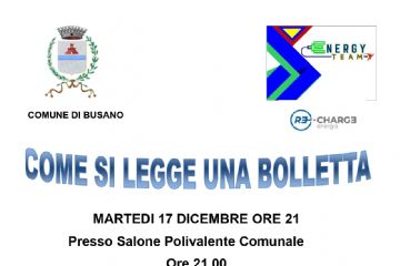 Si avvisa la popolazione che il COMUNE DI BUSANO in collaborazione con L’ENERGY TEAM organizza Martedì 17 dicembre dalle ore 21.00 una serata informativa gratuita sul metodo di...