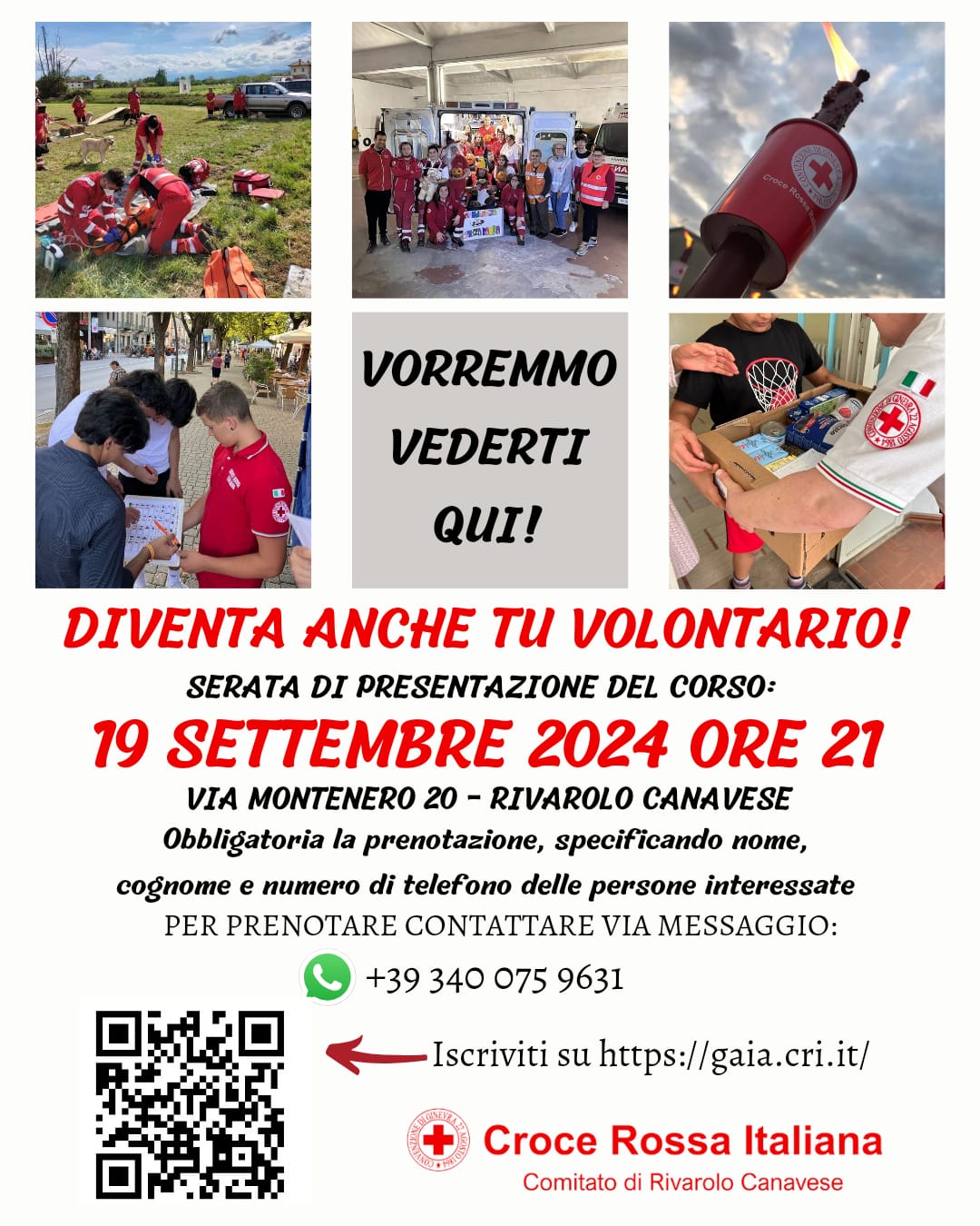 Si avvisa la popolazione che il Comitato Croce Rossa Italiana di Rivarolo Canavese sta organizzando per l'anno 2024 un corso per aspiranti volontari.