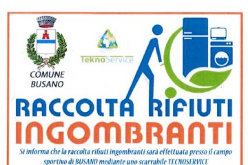 Si informa la popolazione che venerdì 24 ottobre 2025 dalle ore 9.00 alle ore 13.00 sarà effettuata la raccolta rifiuti ingombranti presso il CAMPO SPORTIVO di BUSANO mediante uno scarrabile...